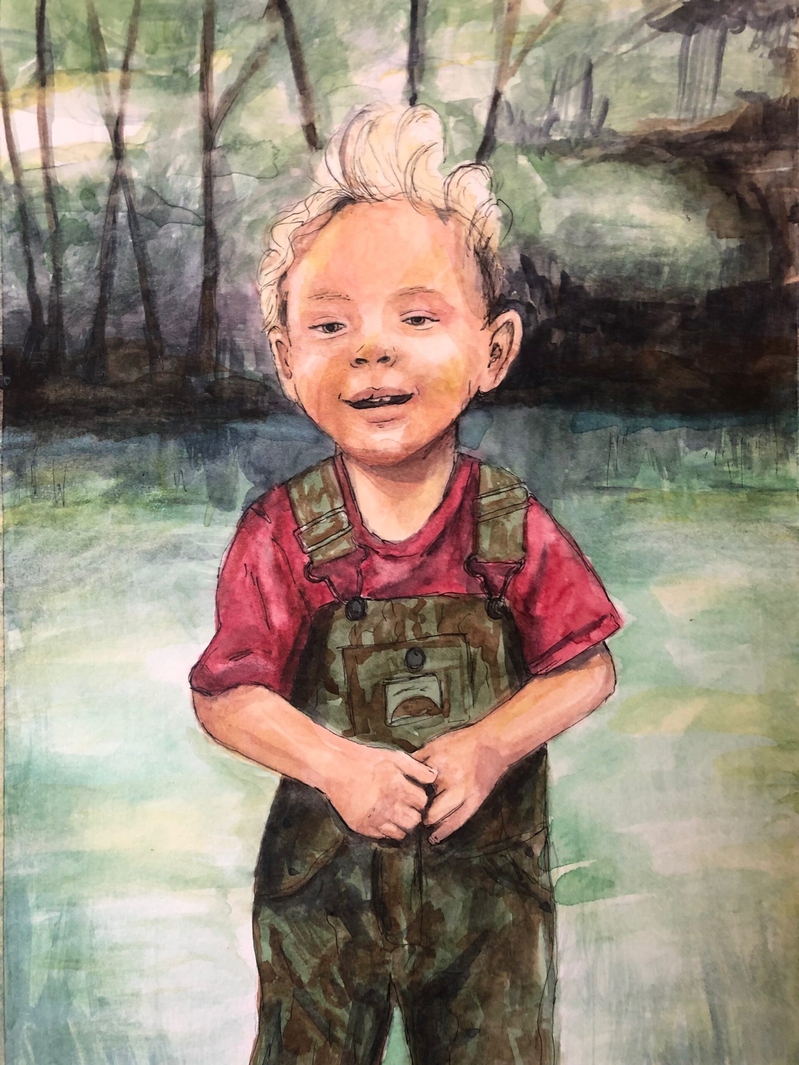 Ken selected a powerful image, taken on the steps of Notre Dame during civil rights riots when the clergy stood hand-in-hand singing “We Shall Overcome”. I found the source of the photograph, from the Notre Dame archives, who granted permission to do a derivative watercolor painting.